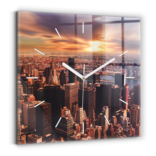 - Zegar ścienny kwadratowy Panorama miasta zachód